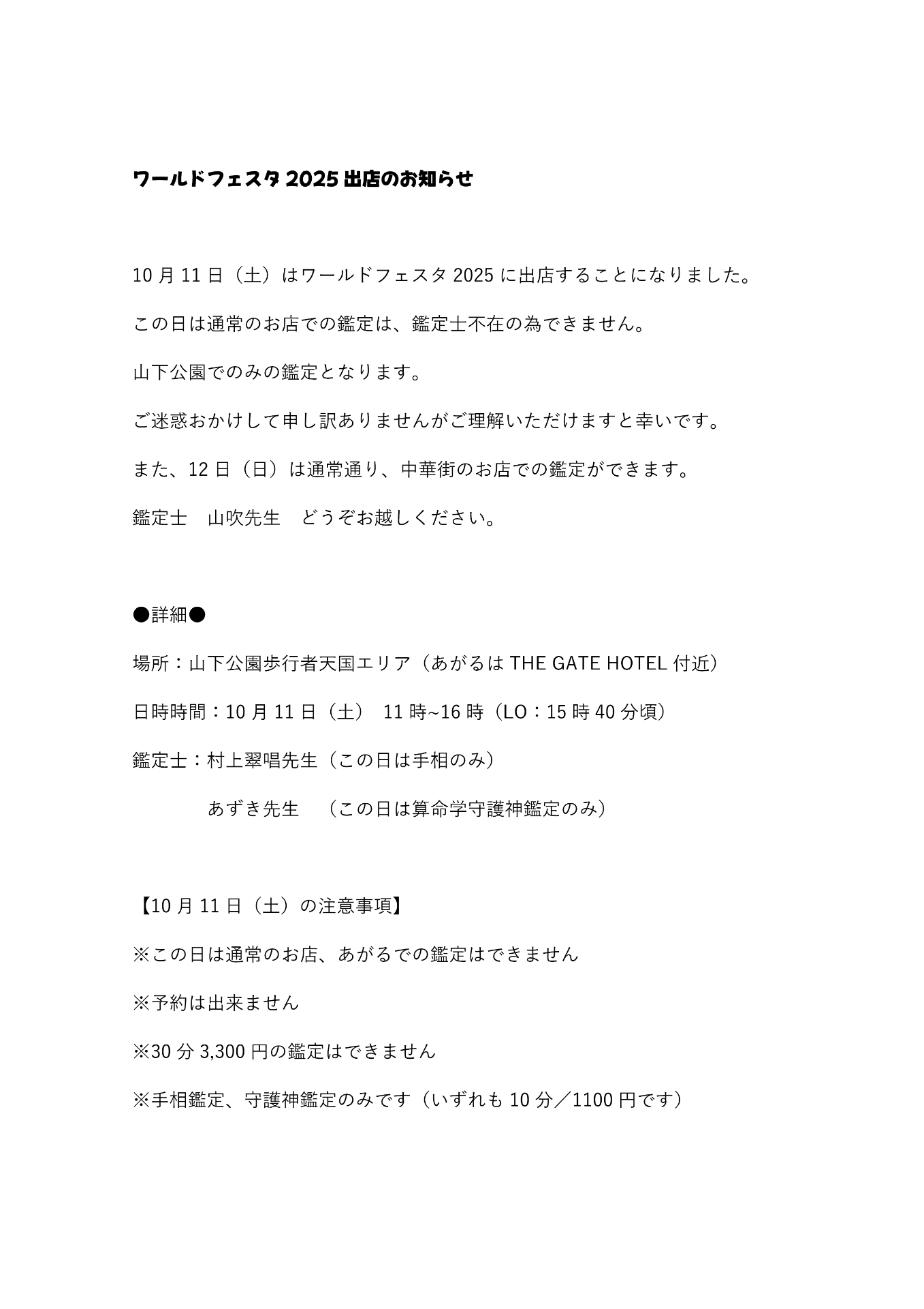 ※村上翠唱先生は13時30分から鑑定を受け付けしております。ご理解いただけますと幸いです。